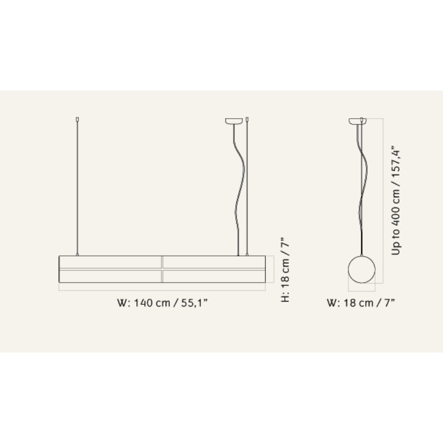 Height: 18 cm, width: 140 cm, depth: 8 cm. Cord: 4 m.