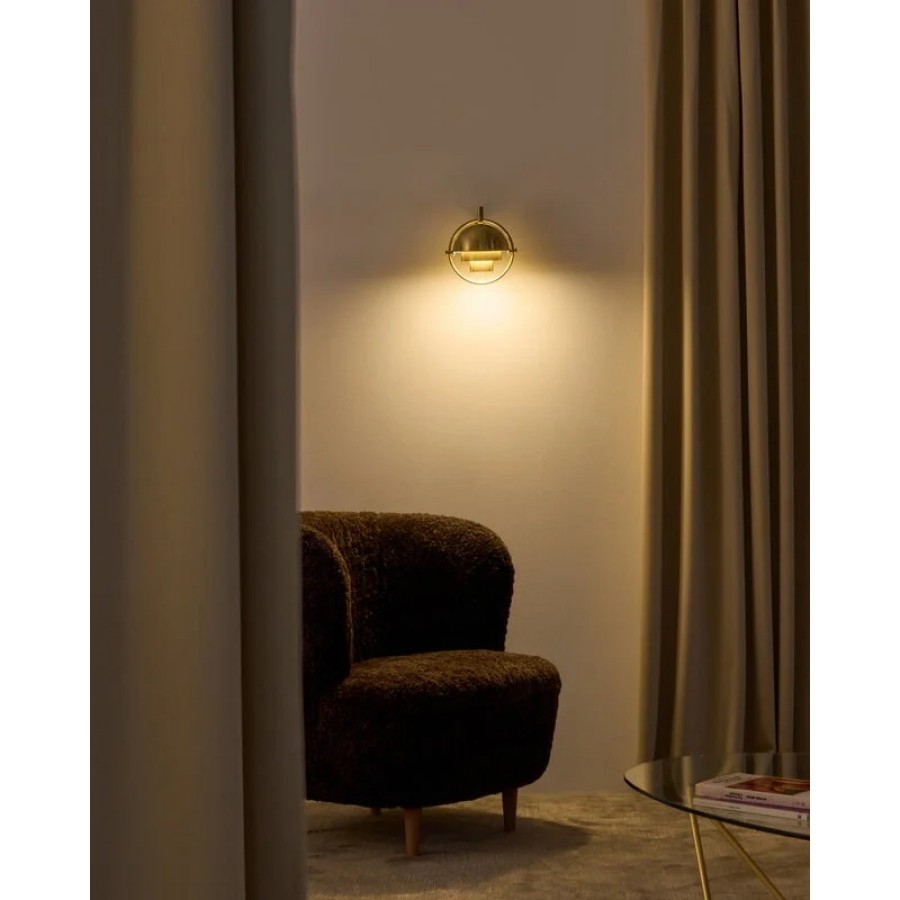 The Multi-Lite was first designed in 1972 by Louis Weisdorf. The Multi-Lite features two cylindrical shapes that are orbited by two individual rotating shades. The shades can be positioned in multiple ways to direct light as desired and create an asymmetrical art light.
