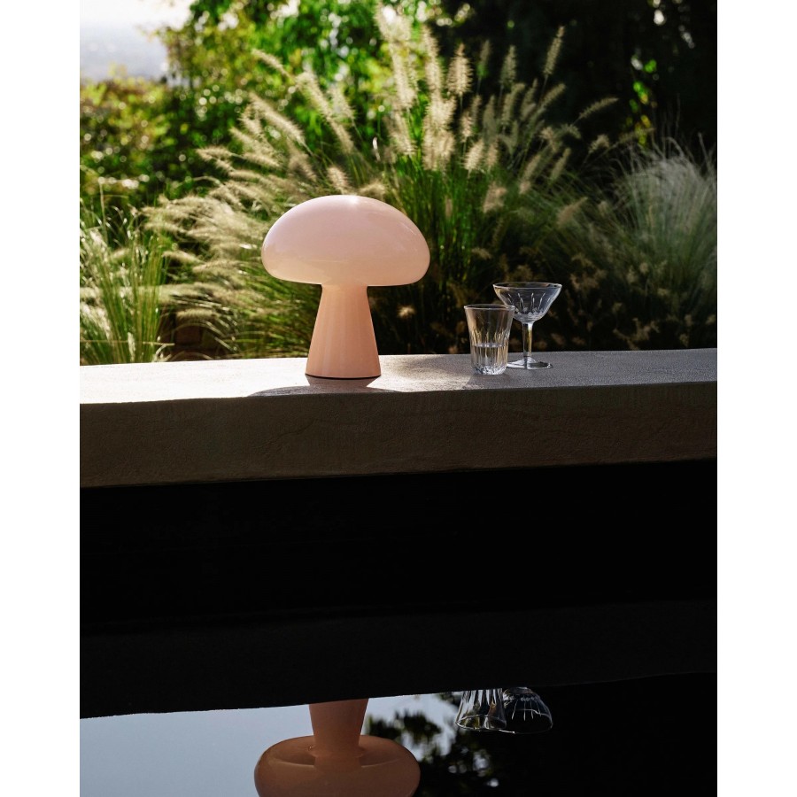The Obello Lamp is an iconic space-age design that will make a strong statement, either as a playful centerpiece or a point of curiosity within any outdoor space. Staying true to the original design Obello is crafted from frosted, mouth-blown glass and includes a versatile dimmable-LED light source. Rechargeable, Obello has the freedom to be moved and utilised both indoors and outdoors.