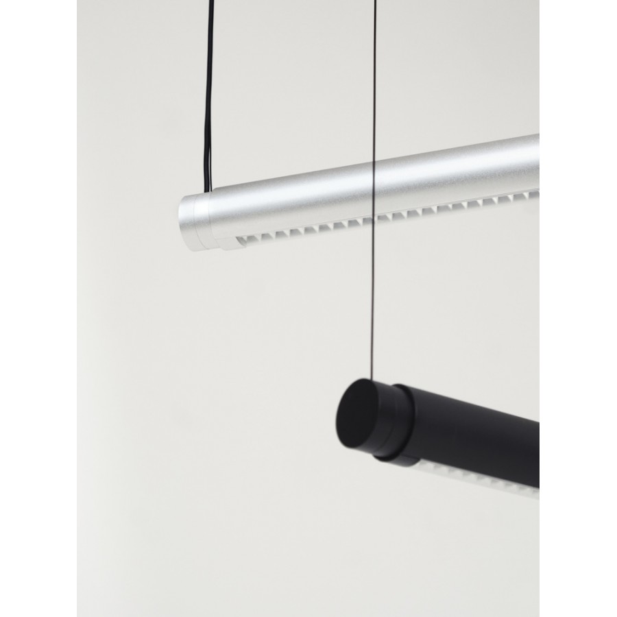 The Factor Linear Pendant is an innovative lamp concept created by Swiss designer Dimitri Bähler. It features a tubular design with a rotatable core element that can be positioned to provide 360 degrees of infinite movement, it creates a personalised lit environment with either direct or indirect light. Constructed with easy-to-assemble components, Factor offers a simple plug-and-play lighting solution that requires no tools for assembly and adjustment. Made from extruded aluminium, the lamp features a dimmable integrated LED light source and is available in both wet sprayed and anodised finishes.