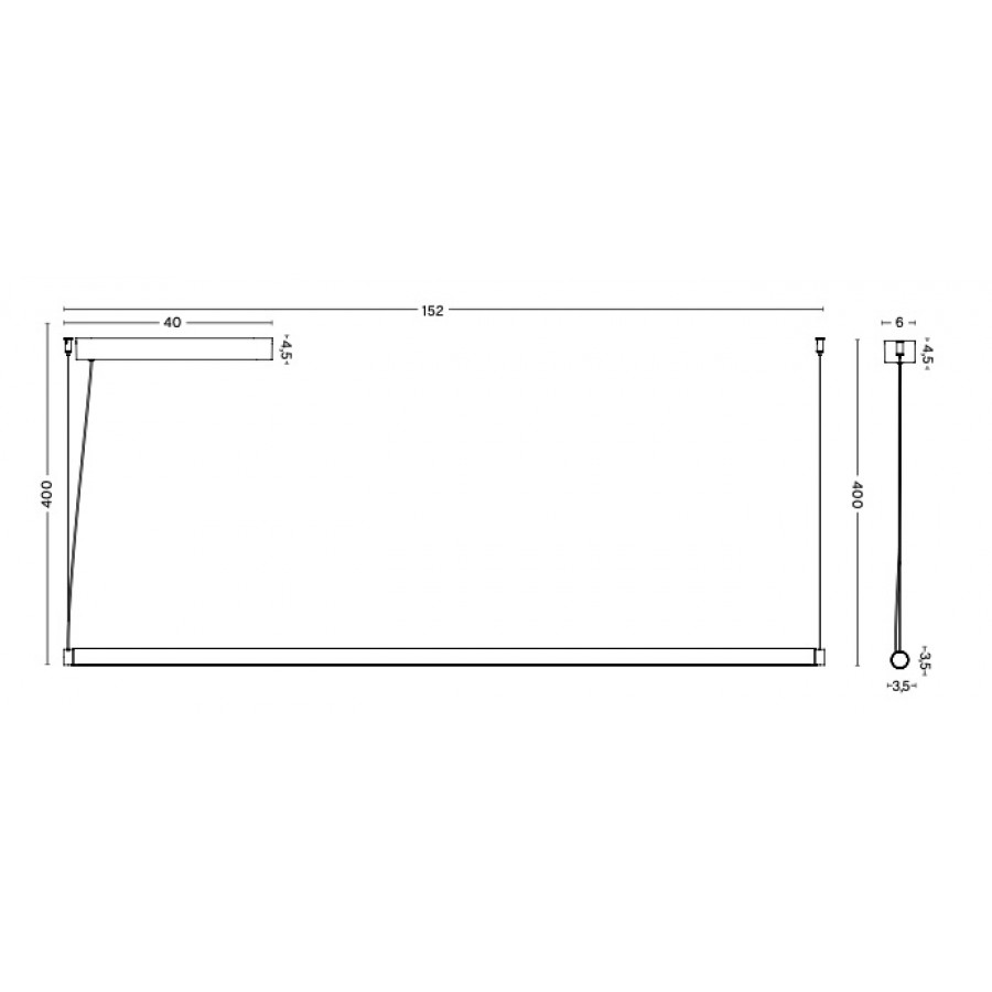 Height: 20.5 cm, width: 152 cm, depth: 6 cm. Tube diameter: Ø3.5 cm. Cord length: 4 m.