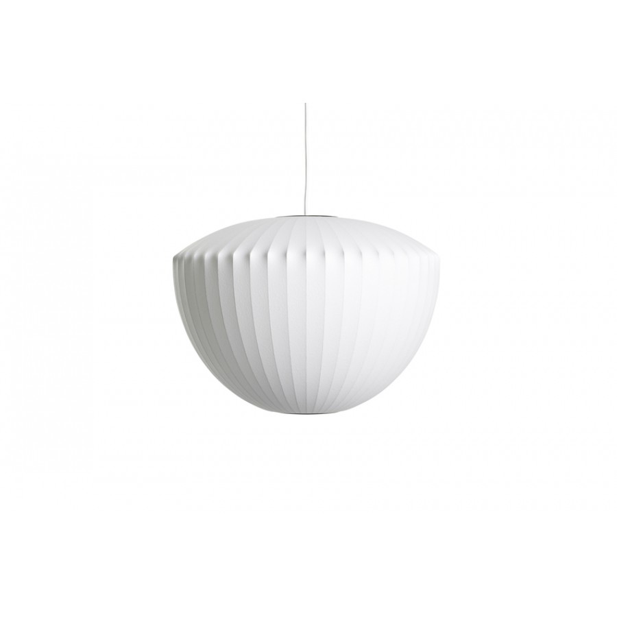 Available in an assortment of organic sizes and shapes, the Nelson pendant series was inspired by a set of silk-covered Swedish pendant lamps Nelson wanted for his office, but found to be too expensive. Employing the resourcefulness that characterised his working process, he decided to use a self-webbing plastic spray developed by the U.S. military, and applied it over a lightweight, rounded-steel frame to produce these soft, glowing fixtures.