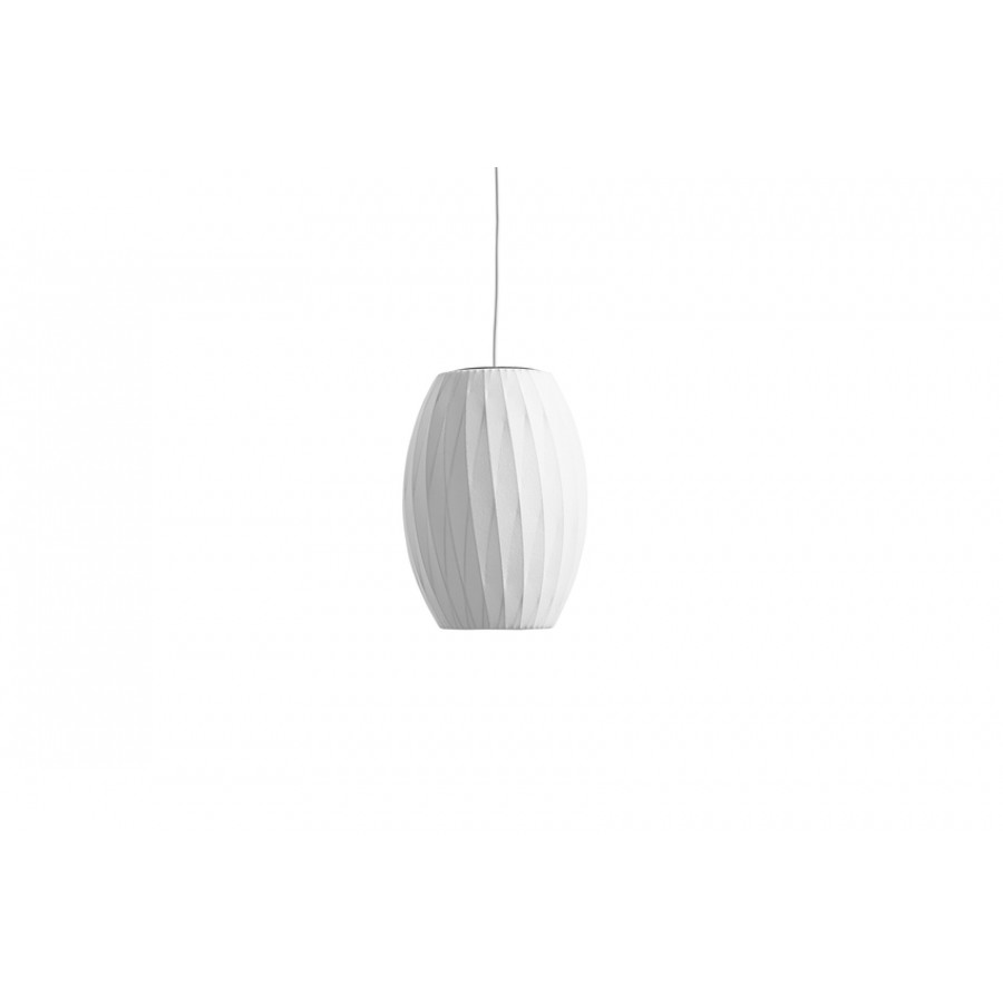 Available in an assortment of organic sizes and shapes, the Nelson pendant series was inspired by a set of silk-covered Swedish pendant lamps Nelson wanted for his office, but found to be too expensive. Employing the resourcefulness that characterised his working process, he decided to use a self-webbing plastic spray developed by the U.S. military, and applied it over a lightweight, rounded-steel frame to produce these soft, glowing fixtures.