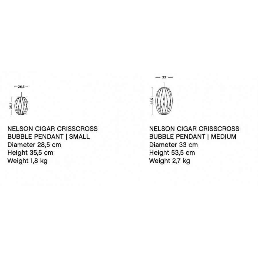 Medium - Height: 53.5 cm. diameter: Ø33 cm. Cord length: 3 m.