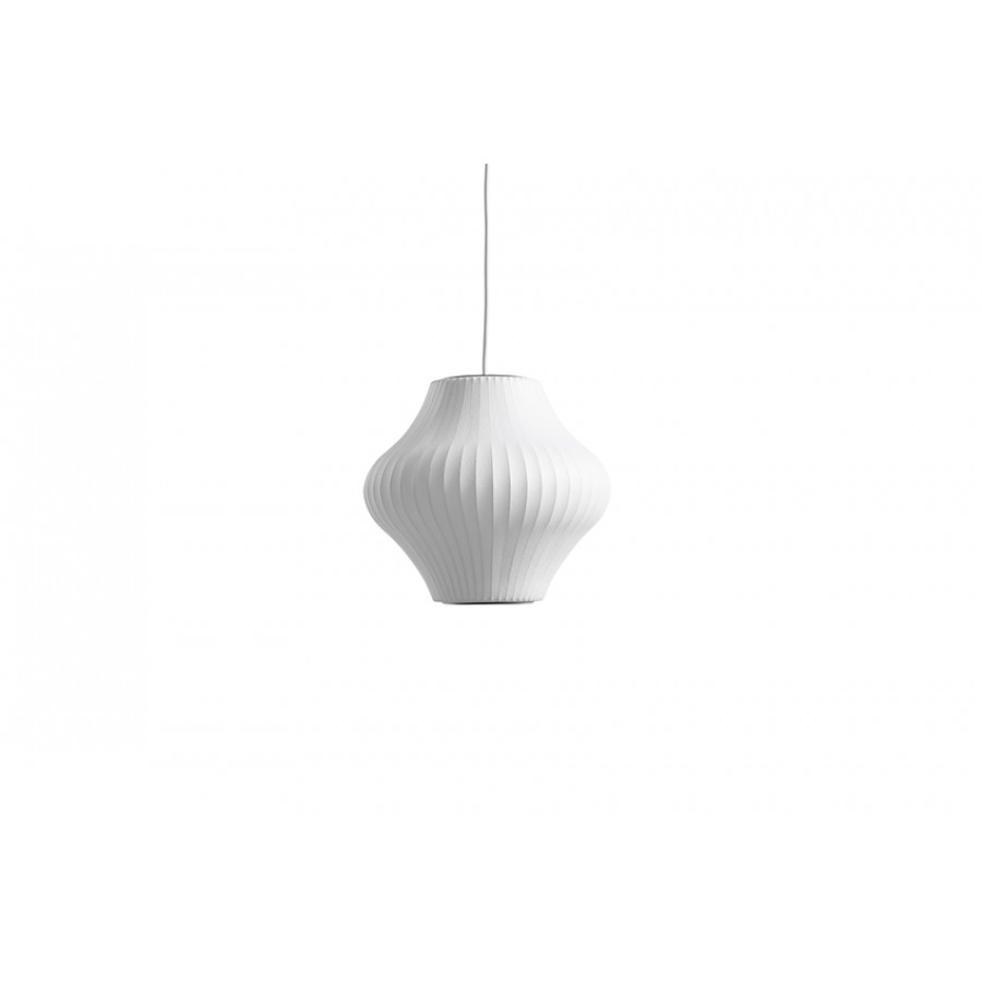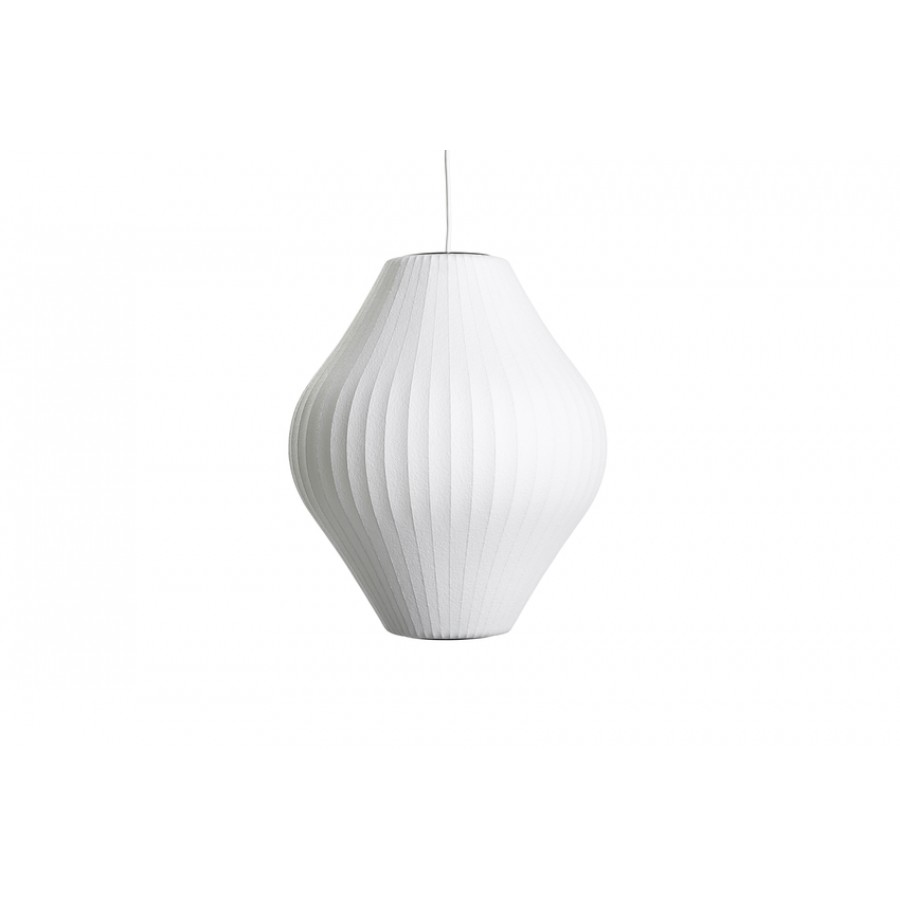 Available in an assortment of organic sizes and shapes, the Nelson pendant series was inspired by a set of silk-covered Swedish pendant lamps Nelson wanted for his office, but found to be too expensive. Employing the resourcefulness that characterised his working process, he decided to use a self-webbing plastic spray developed by the U.S. military, and applied it over a lightweight, rounded-steel frame to produce these soft, glowing fixtures.