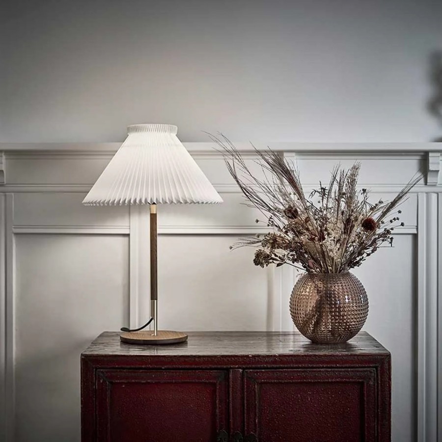 Beautifully crafted with meticulous attention to detail, the Model 328 lamp series exudes an undeniable air of desirability. Designed by the talented Frenchman Aurélien Barbry, this lamp is a true masterpiece that seamlessly blends elegance with modernity. The lamp is constructed using high-quality oak, adorned with exquisite brass details, and features the iconic pleated lampshade that Le Klint is renowned for.