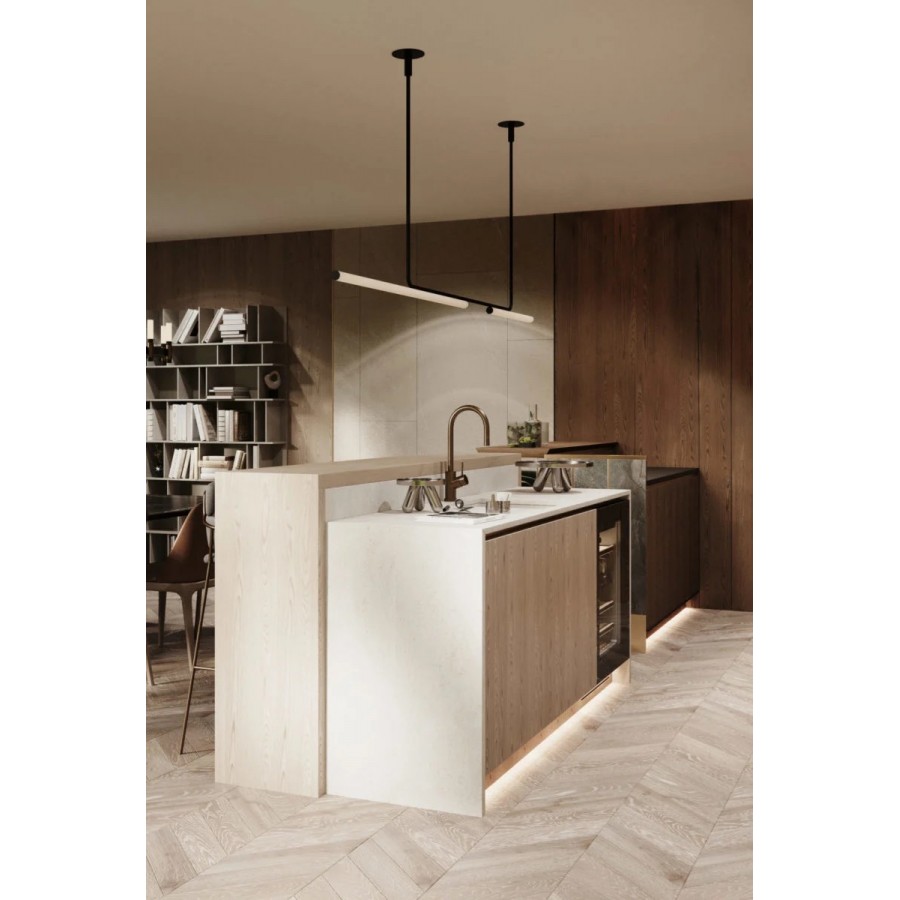 The starting point for the Ambrosia light series was to bring back the traditional Linestra lamp and to update it to show that a technical, resolute design can also be poetic. The Linestra was initially a line of light, which transitioned into a modular system that can be extended to adapt to any space. Its design stems from a tubular structure with gentle lines, allowing the light to descend and gently illuminate. It is this diffuse light that fills the space, adding beauty. Additional poles can be added to the lamp to increase its height in either 40 cm or 60 cm increments. Please contact us by telephone on +44 (0)1444 230844 or e-mail INFO@PAPERROOMS.CO.UK for more information.