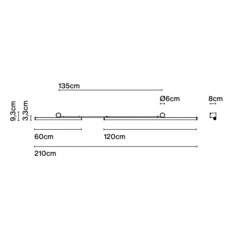 Height: 9.3 cm, width: 210 cm, depth: 8 cm.
