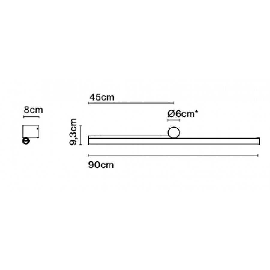 Height: 9.3 cm, width: 90 cm, depth: 8 cm.