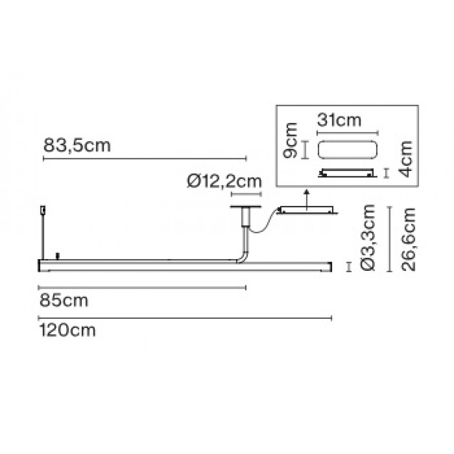 120 cm - Height: 3.3 cm, width: 120 cm. Cable height: 26.6 cm. Height can be increased with 40 cm or 60 cm extension poles.