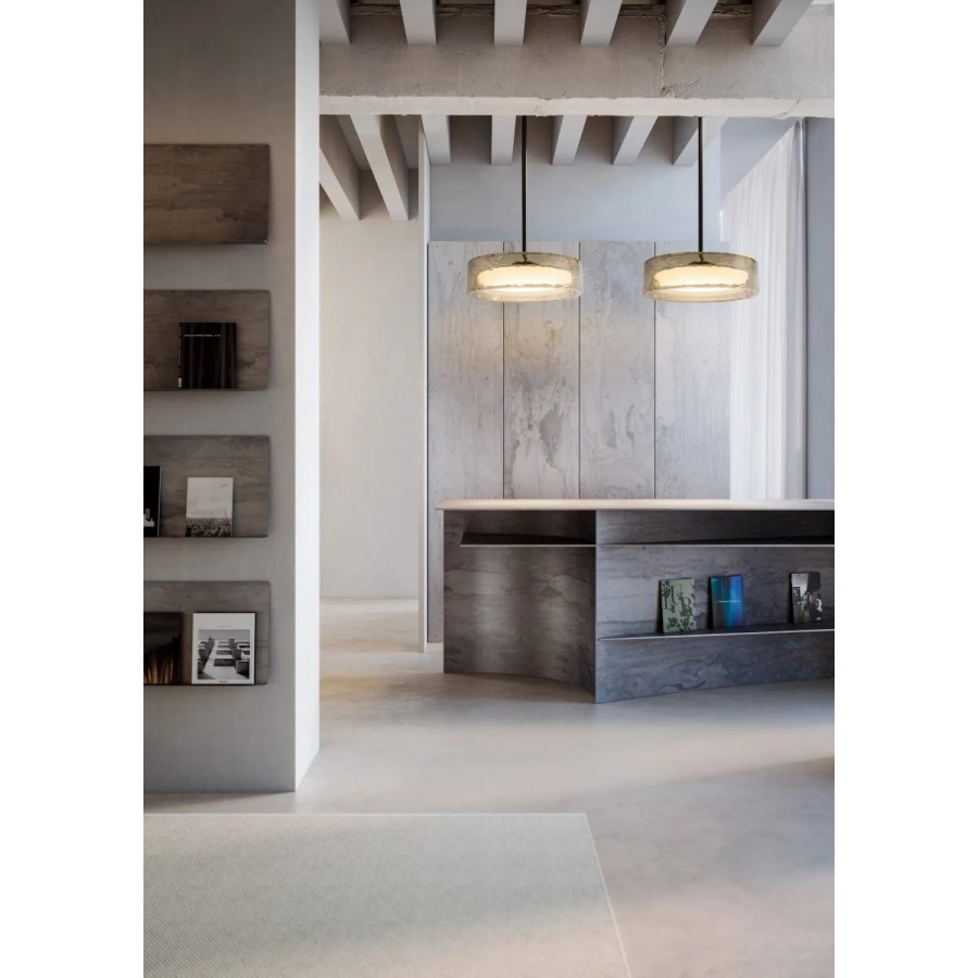 Resembling a block of ice, the appearance of the Ringo lamp series is both solid and weightless. Its designer, Joan Gaspar, has used transparent polycarbonate to create optical reflections, giving the impression of an organic design made out of glass.Its large size is in keeping with its function, since it’s been designed to illuminate large and considerably high spaces. Its transparency means that it blends in readily and harmonises with the space, also when repeated. The height of the stem can be increased by 40 or 60 cm using pole extensions which are available upon request through Paperrooms. Please contact us by telephone on +44 (0)1444 230844 or e-mail INFO@PAPERROOMS.CO.UK for more information.
