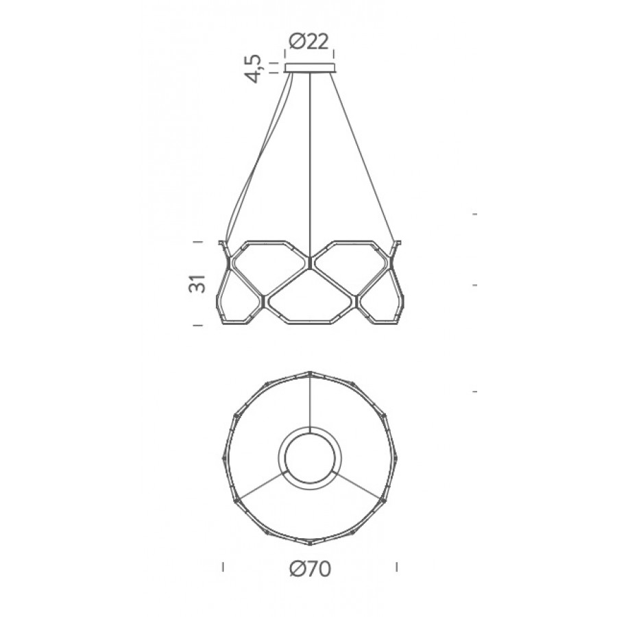 Height: 31 cm, diameter: Ø70 cm. Cord: 3 m.