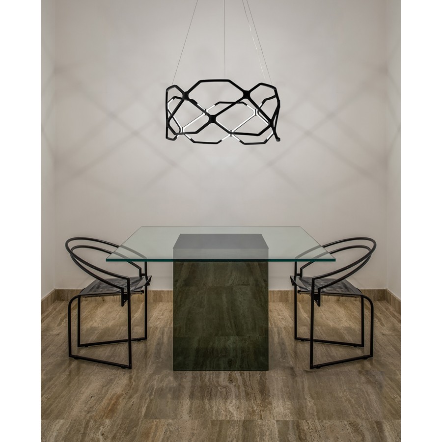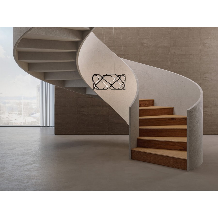 The Titia Pendant lamp series is the result of a remarkable piece of light engineering that becomes part of the structure itself: the vacuum is filled by the light of the structure. The identical modules in recycled polymer are injection-moulded and equipped with quick couplings, allowing a practical and fast assembly and creating a discreet silhouette. TRIAC, CASAMBI and DALI versions of the Titia lamp are available upon request.