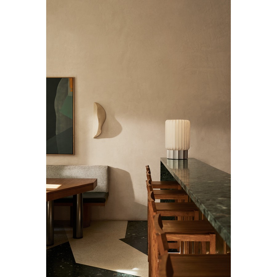 Meter combines a soft, gentle shade with a highly detailed aluminium base for a striking, architectural lighting solution. The cocoon shade diffuses illumination for a soft and warm ambience. Meter is available in two sizes, Half Meter and One Meter.