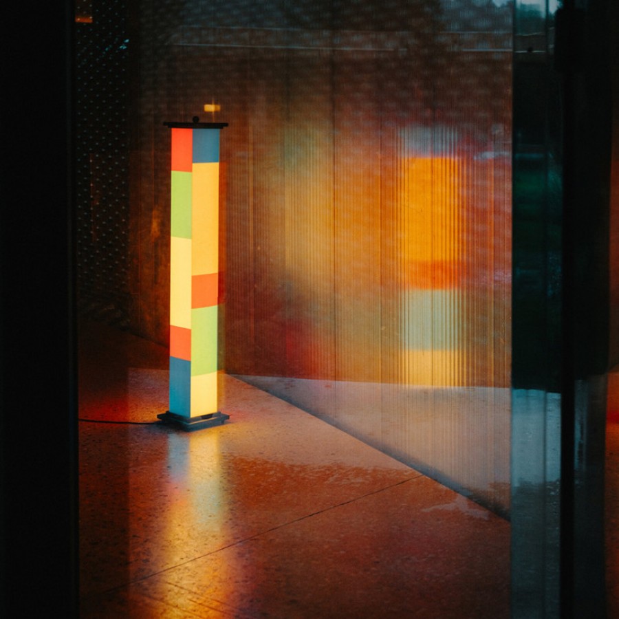An explosion of colour, the La Bella Durmiente lamp series was originally released in 1987. It features a cardstock shade with Giclée print, which when illuminated allows light to diffuse through the pigmented inks, creating a warm glow that surrounds the lamp. The aluminium internal structure houses the LED module and transparent methacrylate tube.