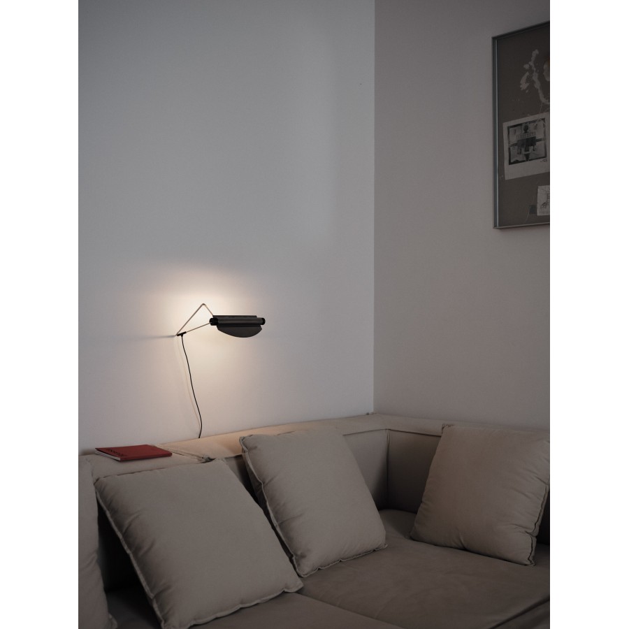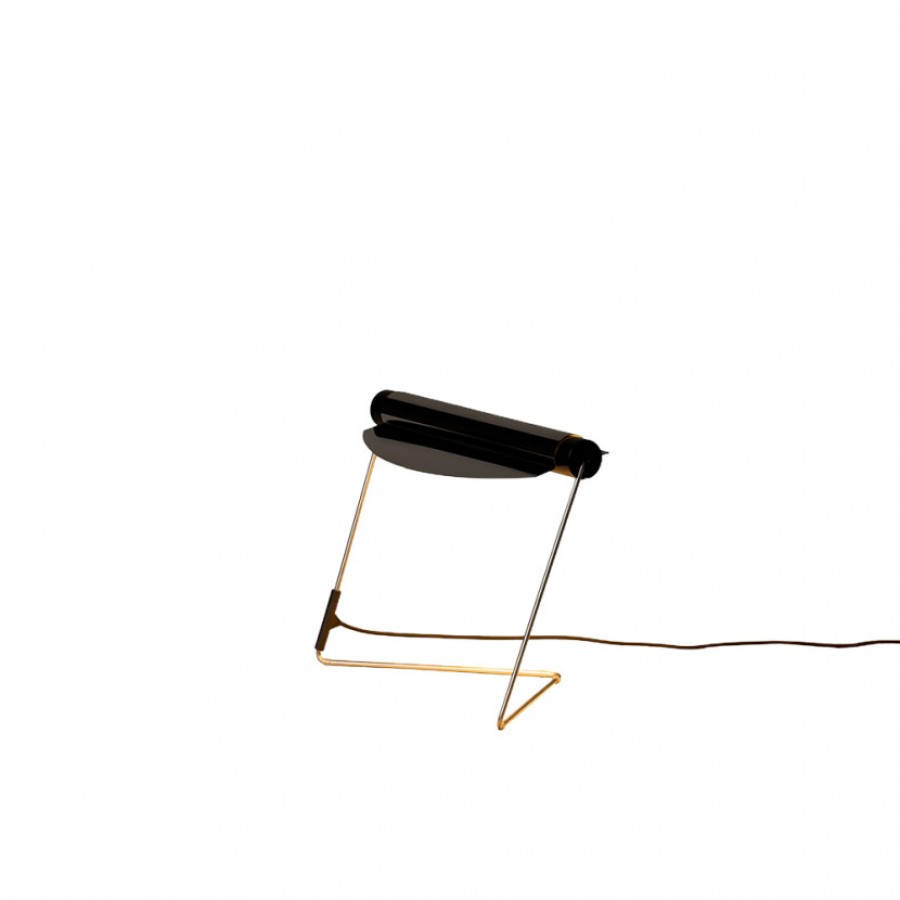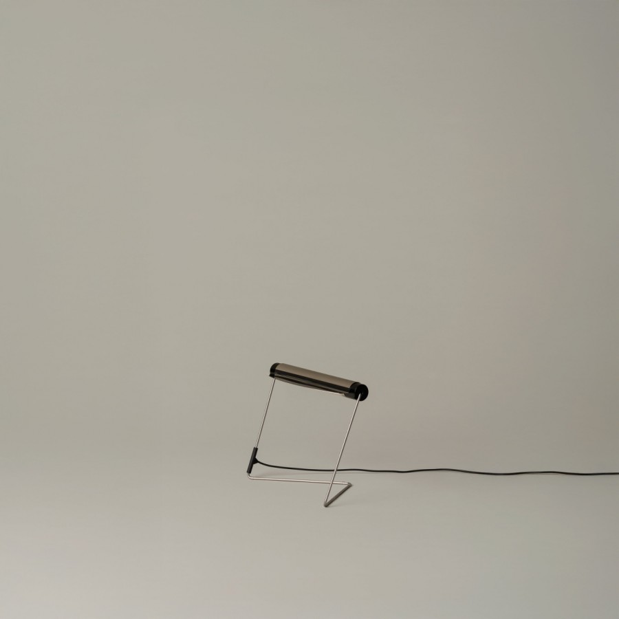 Designed to rest on a desk or hang from a wall, Lamparaprima consists of a metal rod supporting an LED tube, encased in a rotating visor-like shade. By bending and twisting a clothes hanger, Pete Sans came upon an ingenious and expressive solution that would become his first commercial lamp.