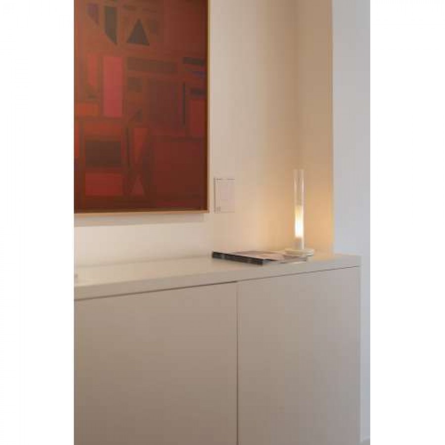 Inspired by the traditional oil lamp, the Sylvestrina Table Lamp is a robust yet precisely engineered light source. The outer tube is pressed down to activate the switch, which can be adjusted to full, medium or zero strength. It is fully portable with battery life of 7 hours on high power and 14 hours on minimum. Battery charging time is 5 hours.