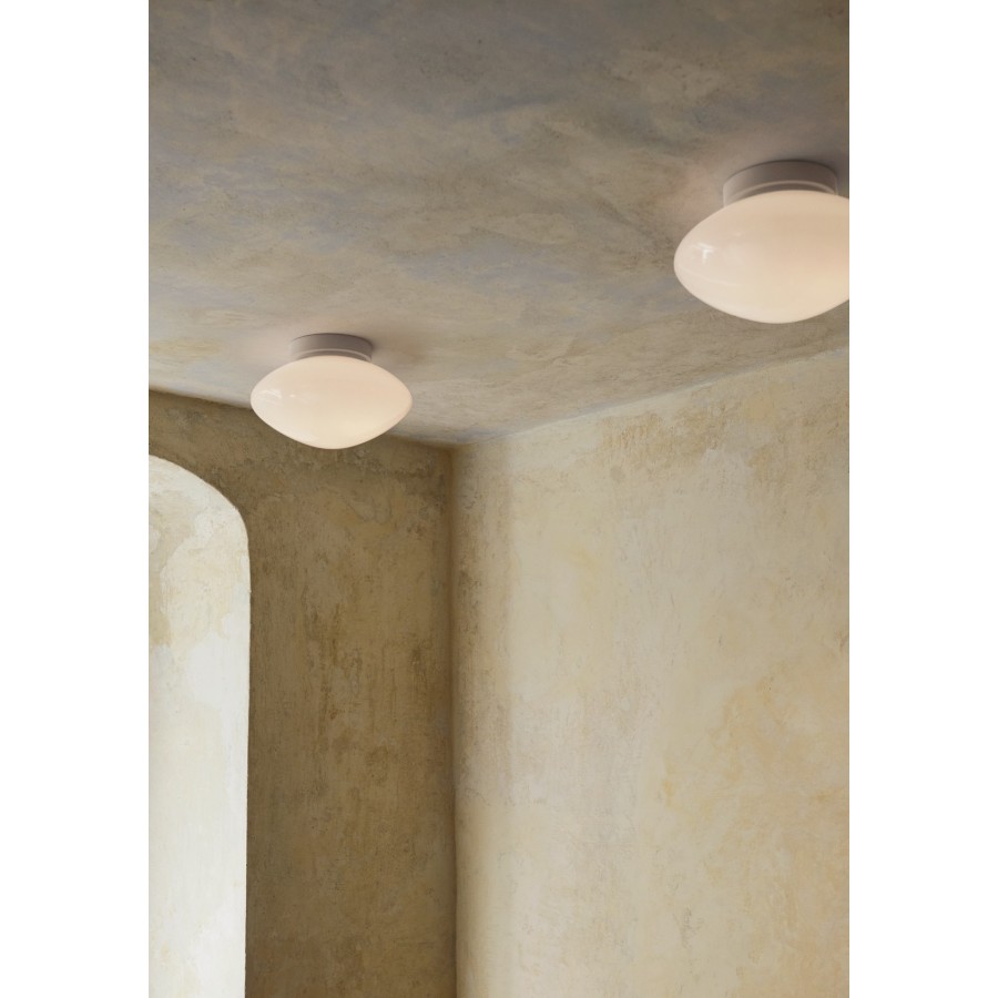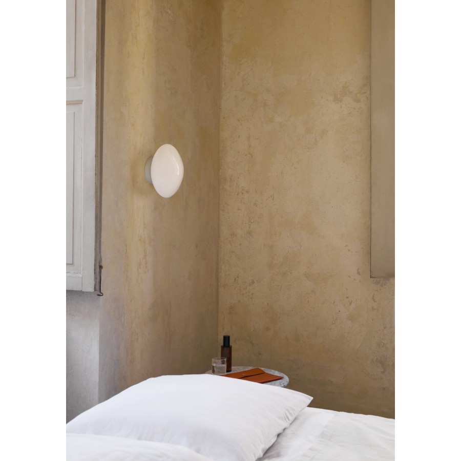 The classic globe lamp has been reimagined with a mouth-blown opal glass shade and simplified white aluminium detailing. Warm and diffuse light is emitted through the globe, offering modern Scandi interior lighting solution.