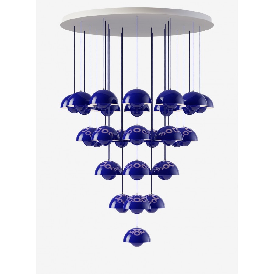 The iconic Flowerpot Lamp was originally designed in 1968 by Verner Panton. Its long lasting design is formed from two semicircular spheres which face each other to provide direct light. Available in a range of colours, the lamp has long proved itself a lasting design which is as relevant today as when it was first released. The VP1 chandelier combines multiple Flowerpot shades.