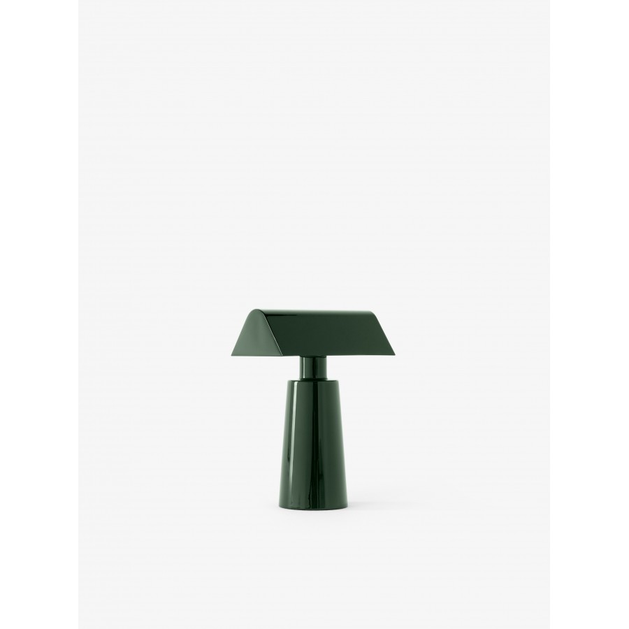 The Caret Table Lamp is a reimagination of the classic library lamp. Created from lacquered steel, its linear form features a rounded base and a long pyramid shaped top, which emits a soft and diffuse illumination. With a charging time of 3.5 hours the illumination at its highest setting will operate for 11 hours.