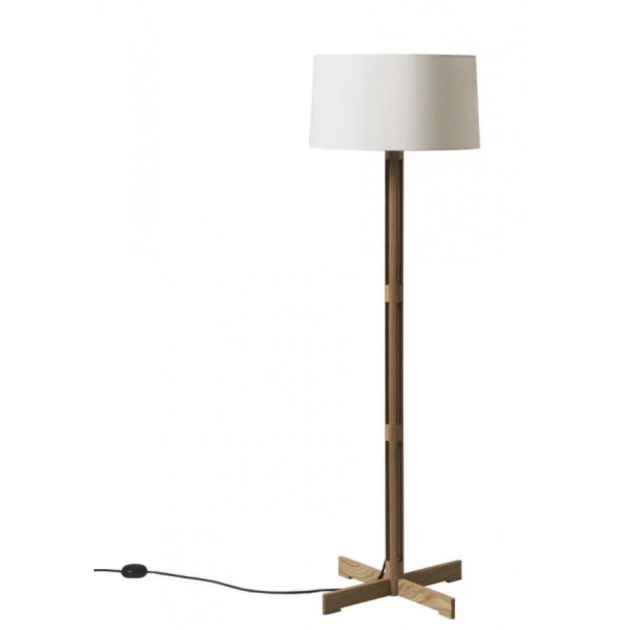 The Santa & Cole FAD floor lamp was designed to light the original offices of Barcelona's Fostering Arts and Design Association (FAD). It has a solid structure with a cross-shaped section and a white linen shade, combining solidity and space, gravity and elegance. The oak structure and parchment shade contribute a style and warmth to the design.