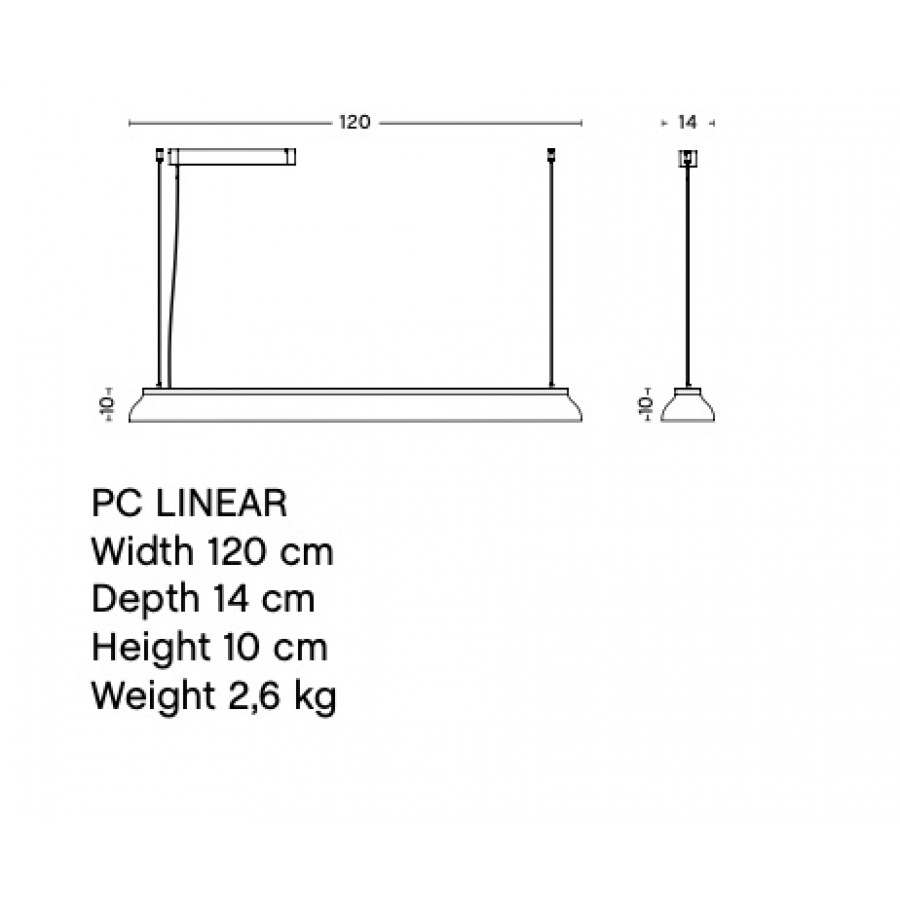 The PC Linear Pendant Lamp shares the same simple and elegant profile that is present in the rest of the PC lamp collection. Its shade is pressed from a single aluminium component with a wet-sprayed finish.