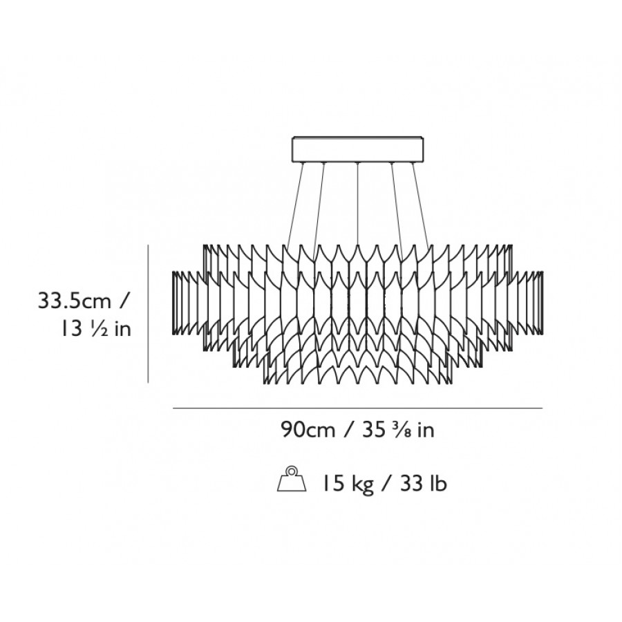 Large - Height: 33.5 cm, diameter: Ø90 cm. Cord: 3 m. 5 x steel tensile wire.