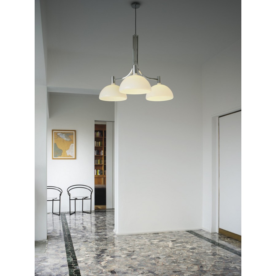 The AS lamp series is a 1969 design that combines linear shapes with the extreme quality of materials with the aim of managing the different volumes of the space with a single design for ceiling, wall, floor and table.